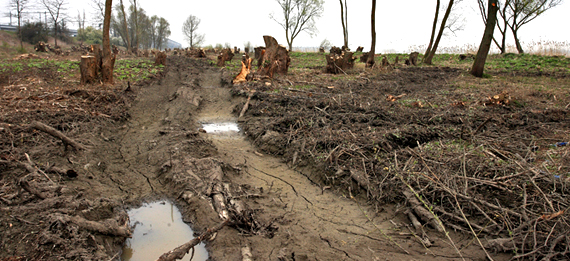 Forse kaalslag langs de oevers
