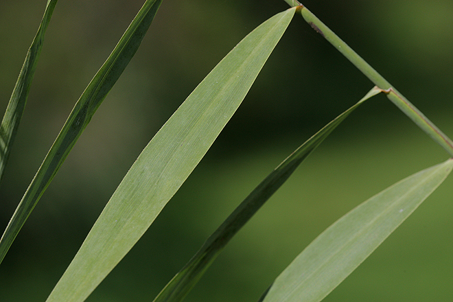 Riet kan 1-3 m hoog worden. De stengel staat stijf rechtop en het 1 tot 3 cm brede blad met spits toelopende top is grijsgroen. Op de grens van de bladschede en de bladschijf zit een tongetje (ligula) in een krans van haartjes.