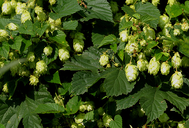 De wilde hopplant uit Europa en Azië wordt al eeuwenlang gecultiveerd. hopplanten kunnen zich meterslang omhoog slingeren tegen schuttingen,palen, draden, bomen enzovoorts. Het ruwe blad lijkt op het blad van een wijnrank.